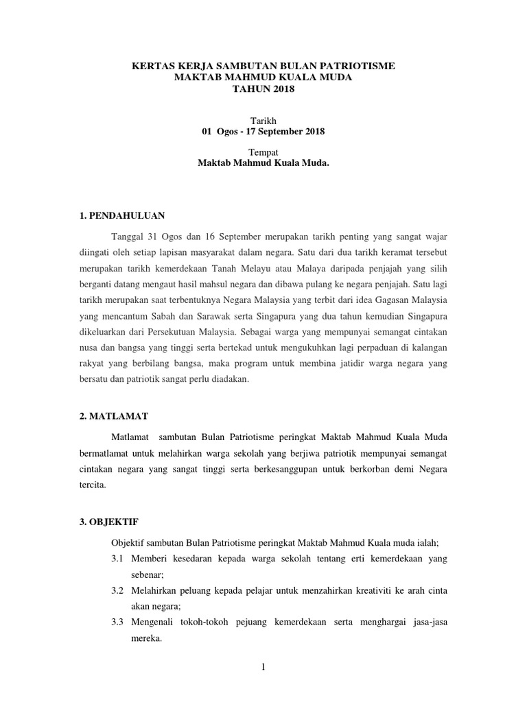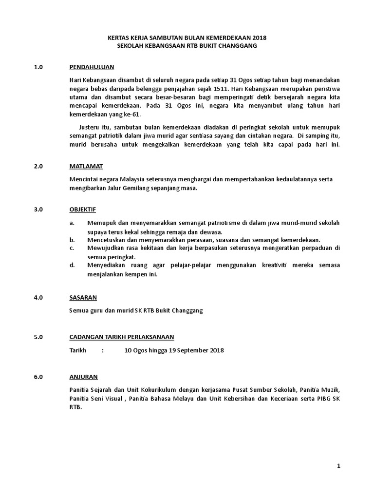 Kertas Kerja Bulan Kemerdekaan from imgv2-1-f.scribdassets.com Video sambutan bulan kemerdekaan sk kangkar pulai 2 2018. Kertas kerja sambutan bulan kebangsaan sk skarok 2018. Kerja program sambutan bulan kemerdekaan 2014 sk ulu bole. Panitia sejarah dengan kerjasama panitia pendidikan kesenian. Savesave kertas kerja bulan kemerdekaan2018 for later. Kertas kerja sambutan kemerdekaan peringkat sekolah mp3 & mp4. Contoh kertas kerja hari merdeka. Hari sukan sk chuping 2013.