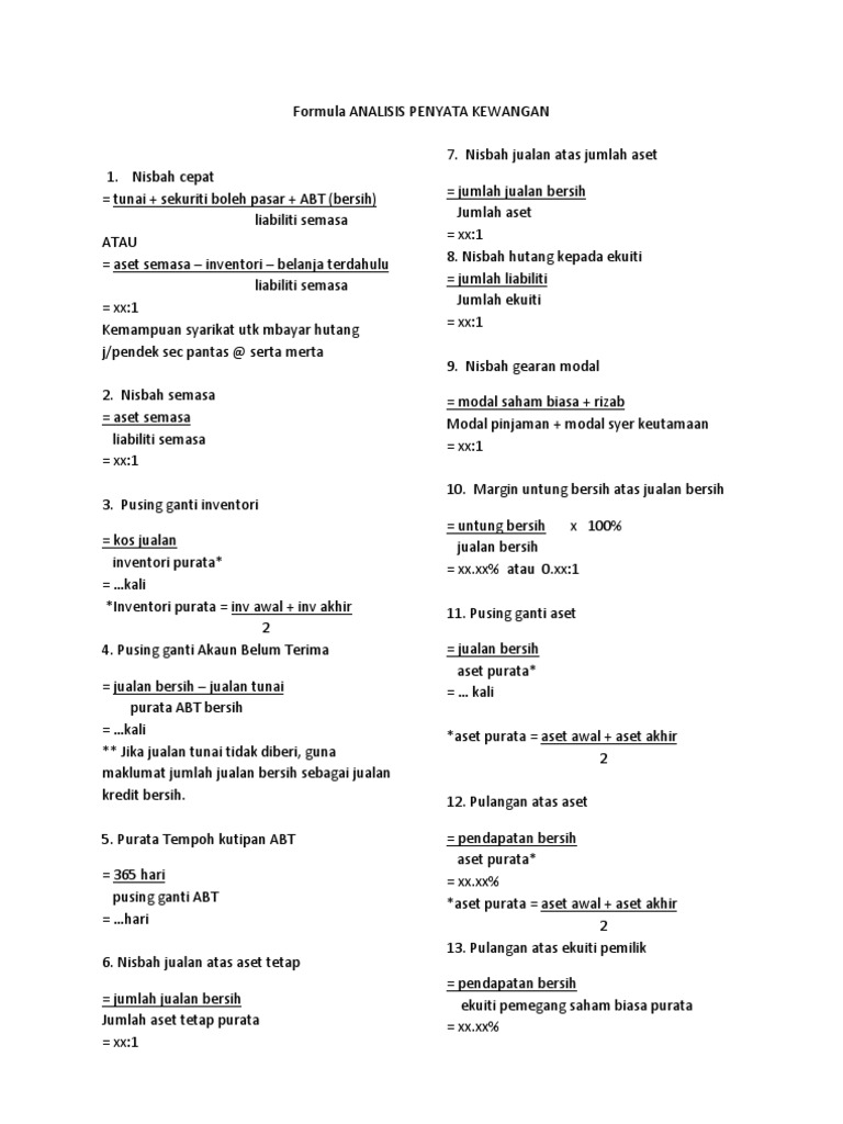 Bbpw3103 Financial Management 1 Note Bi Z06oo2xz5y0x from doku.pub Dalam kes ini, nisbah pusing ganti aset tetap menggunakan purata aset tetap bersih. Pusing ganti jumlah aset adalah untuk mengukur kecekapan syarikat atau perniagaan menggunakan aset untuk menjana jualan. Nisbah pusing ganti jumlah aset dihitung dengan cara yang serupa, seperti berikut: Hitung nisbah pusing ganti aset, yang sama dengan nisbah pendapatan dari jualan produk kepada jumlah nilai aset syarikat. Gejala tersebut bisa saja disebabkan oleh infeksi saluran cerna, hingga pusing dan mual yang terjadi dapat berlangsung sementara ataupun bertahan dalam waktu lama. Jumlah aset yang rendah menunjukkan kemungkinan peningkatan pelauran atau aset firma tidak diimbangi oleh peningkatanjualan yang secukupnya. Asuransi malpraktek dibeli oleh para profesional perawatan kesehatan untuk. Nisbah pusing ganti aset tetap.