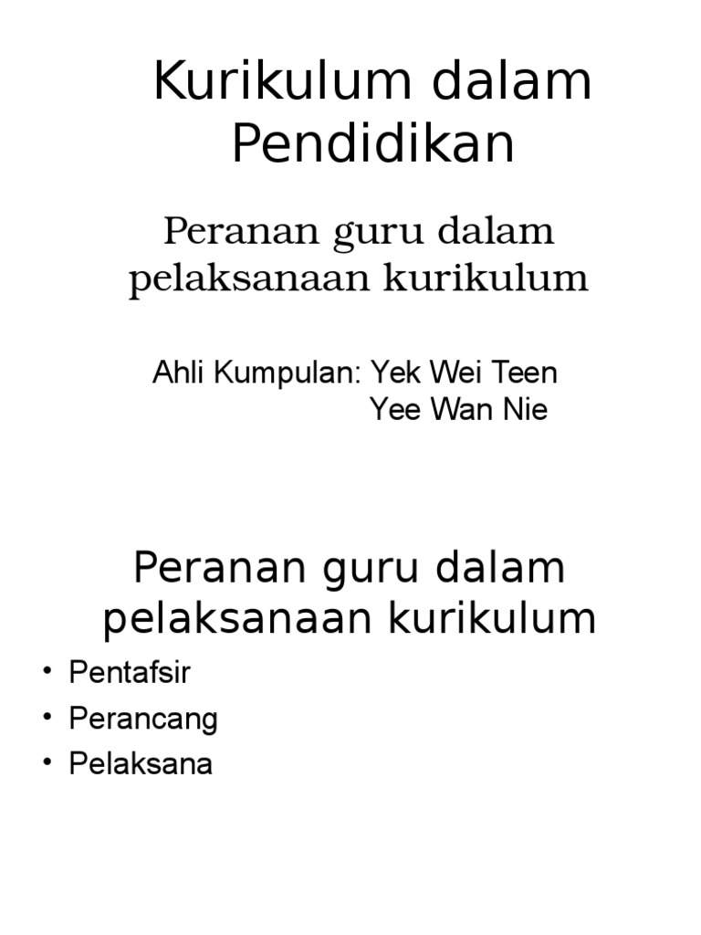 Peranan guru dalam pelaksanaan kurikulumkurikulum dalam pendidikanahli kumpulan: